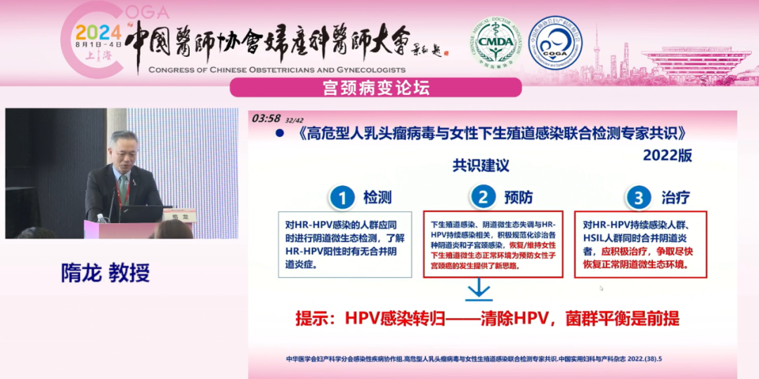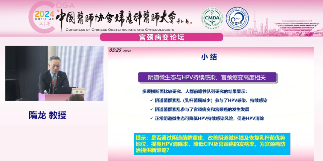 復旦大學附屬婦產(chǎn)科醫(yī)院隋龍教授就《陰道微生態(tài)調(diào)節(jié)與HPV轉(zhuǎn)歸》為題進行報告: