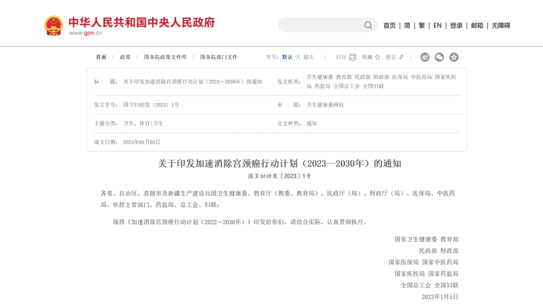 ▲ 中國(guó)十部門(mén)聯(lián)合:加速消除宮頸癌行動(dòng)計(jì)劃(2023-2030年)