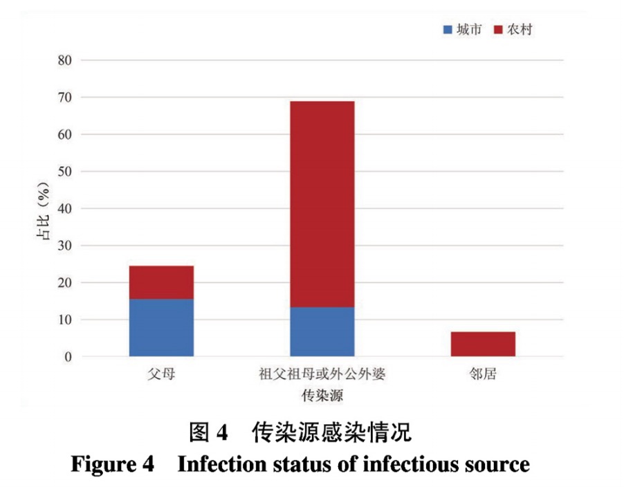 本研究結(jié)果中女患兒約占總數(shù)的68.89%,考慮與生理解剖結(jié)構(gòu)因素有關(guān)?本研究中患兒發(fā)病部位多見于肛周(73.33%),與其他研究結(jié)果相同[3,5],考慮原因是幼兒皮膚薄嫩,便后擦拭的反復摩擦造成局部皮膚屏障受損,容易導致HPV的感染?另外,本研究中農(nóng)村患兒占比較高,這與父母外出打工,幼兒長期留守有關(guān)?他們大多都由祖父母一輩老年人照料,衛(wèi)生習慣和防病理念較差,而且近幾年老年人性病發(fā)病率逐年升高,主要集中在農(nóng)村[6-7],如果患有尖銳濕疣的老人不注意清潔衛(wèi)生,在手部攜帶病毒的情況下護理小孩,給小孩擦拭清潔外陰及肛門,可能導致幼兒感染?