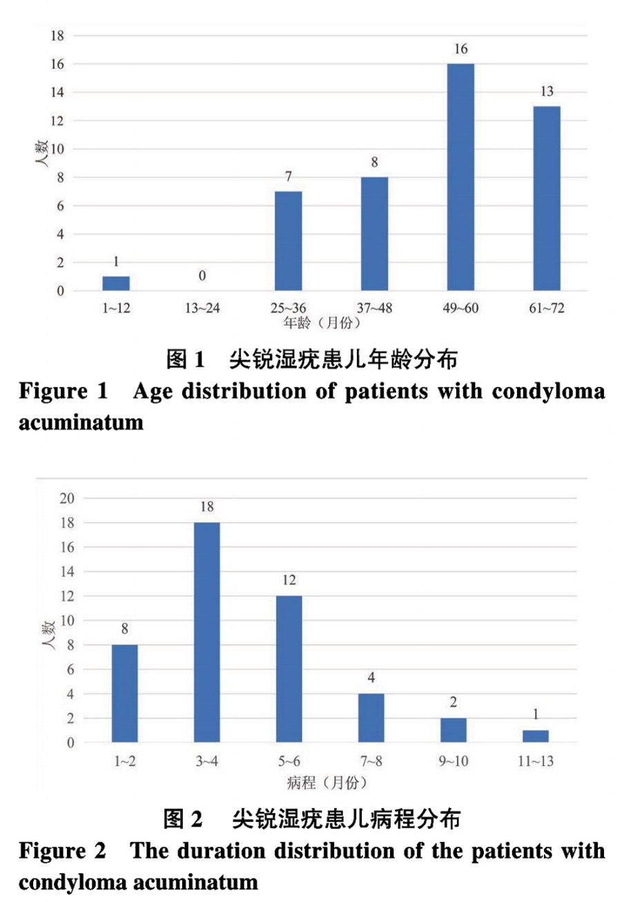 以2015年1月——2020年12月西南醫(yī)科大學附屬醫(yī)院皮膚科診治的45例年齡在6個月~6歲之間的尖銳濕疣患兒為研究對象,通過資料收集、整理、分析,對其臨床表現(xiàn)、治療情況及傳染源的感染情況等進行歸納總結(jié),結(jié)合國內(nèi)外已有的防治方案,探討合理的防治策略。