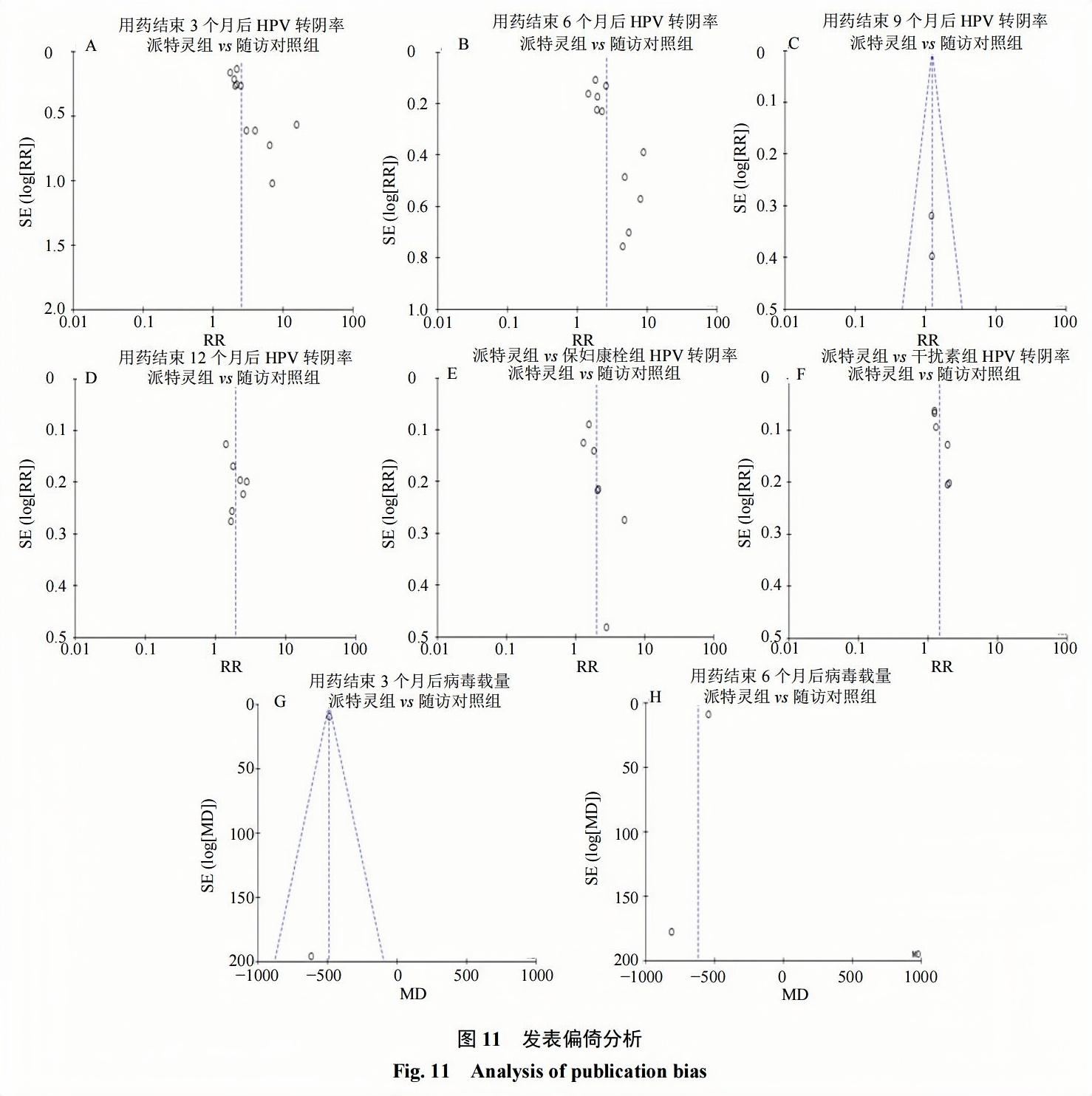 派特靈治療HR-HPV療效顯著,安全性較高值得臨床進(jìn)一步推廣?相較于干擾素,派特靈療效更為顯著?但由于受納入研究樣本量所限,研究結(jié)果有可能存在偏倚,尚需更多高質(zhì)量大樣本的臨床研究予以驗(yàn)證?