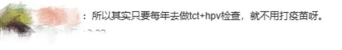 本次話題中,有網(wǎng)友評(píng)論“只要每年去做TCT+HPV檢查,就不用打疫苗呀。”