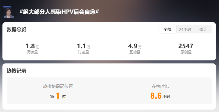 4月15日至21日是第30個全國腫瘤防治宣傳周,在此期間微博上的一條熱搜引起了廣泛的關注——“絕大部分人感染HPV后會自愈”。